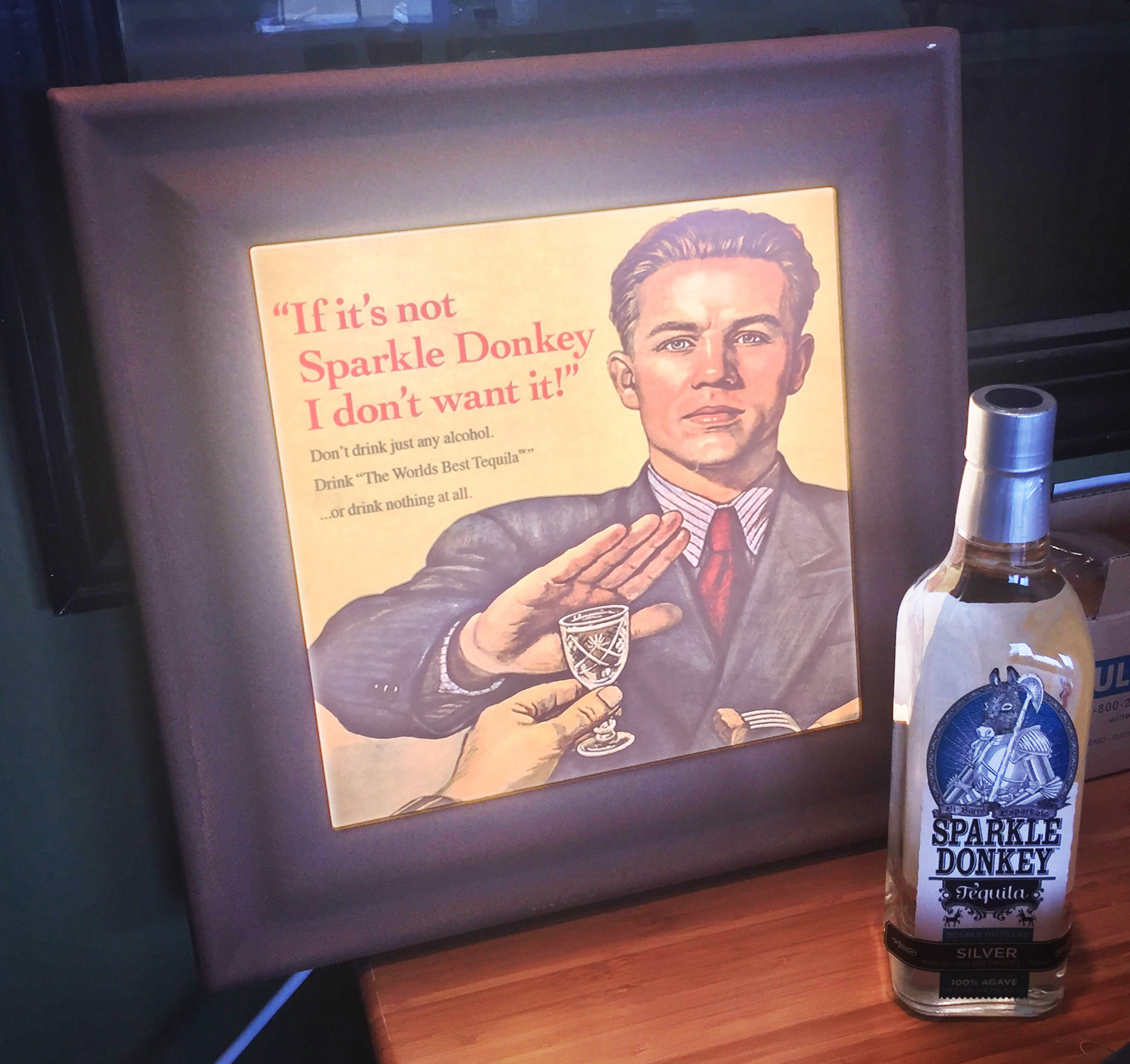 Sparkle Donkey Tequila Print Advertisement: “Delivered to You”